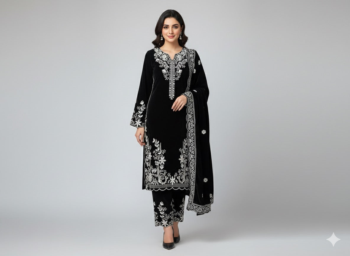 New Stunning Winter Stitched Velvet Embroidered 2-Piece Suits